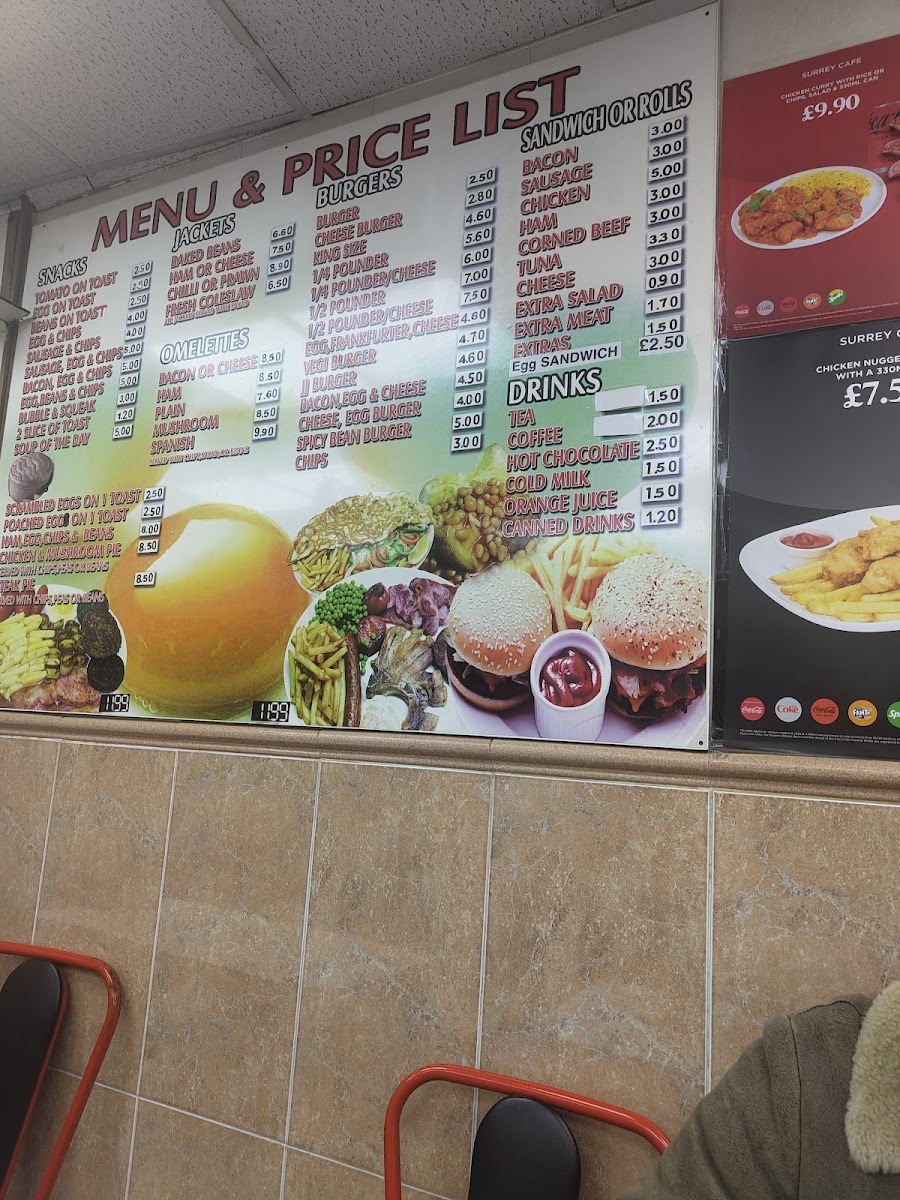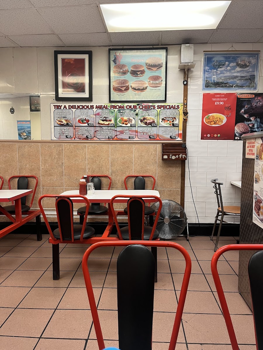 Surrey Street Cafe is a no-frills, traditional cafe tucked just off the hustle of Surrey Market in Croydon. Its location behind market stalls gives it a tucked-away feel, making it a spot locals often stumble upon while wandering nearby. The atmosphere is straightforward and unpretentious, filled with the kind of familiarity you’d expect from a long-standing neighborhood caff rather than a polished coffee bar.